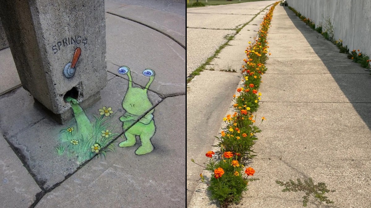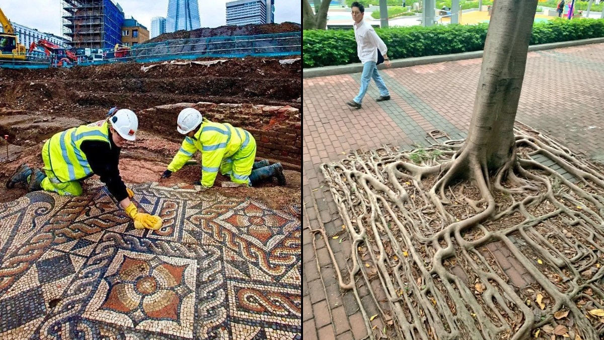 From buried mosaics to trees shaping themselves around bricks, these 11 artworks and urban phenomena show…